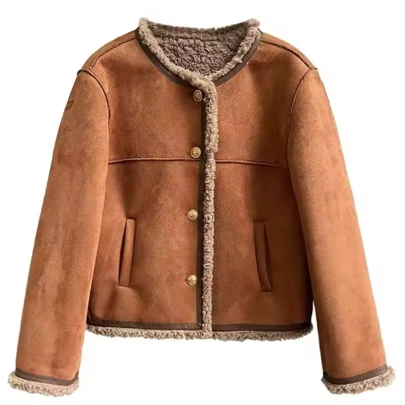 Möt vintern med stil med Vivienne™ | ג'ייד . זה fårskinnsjacka משלב נוחות וסגנון עם חומר קנאפ-design ו-softa. Tillverkad av kvalitetsmaterial , lägger den till en touch av sofistikering till din höstgarderob.