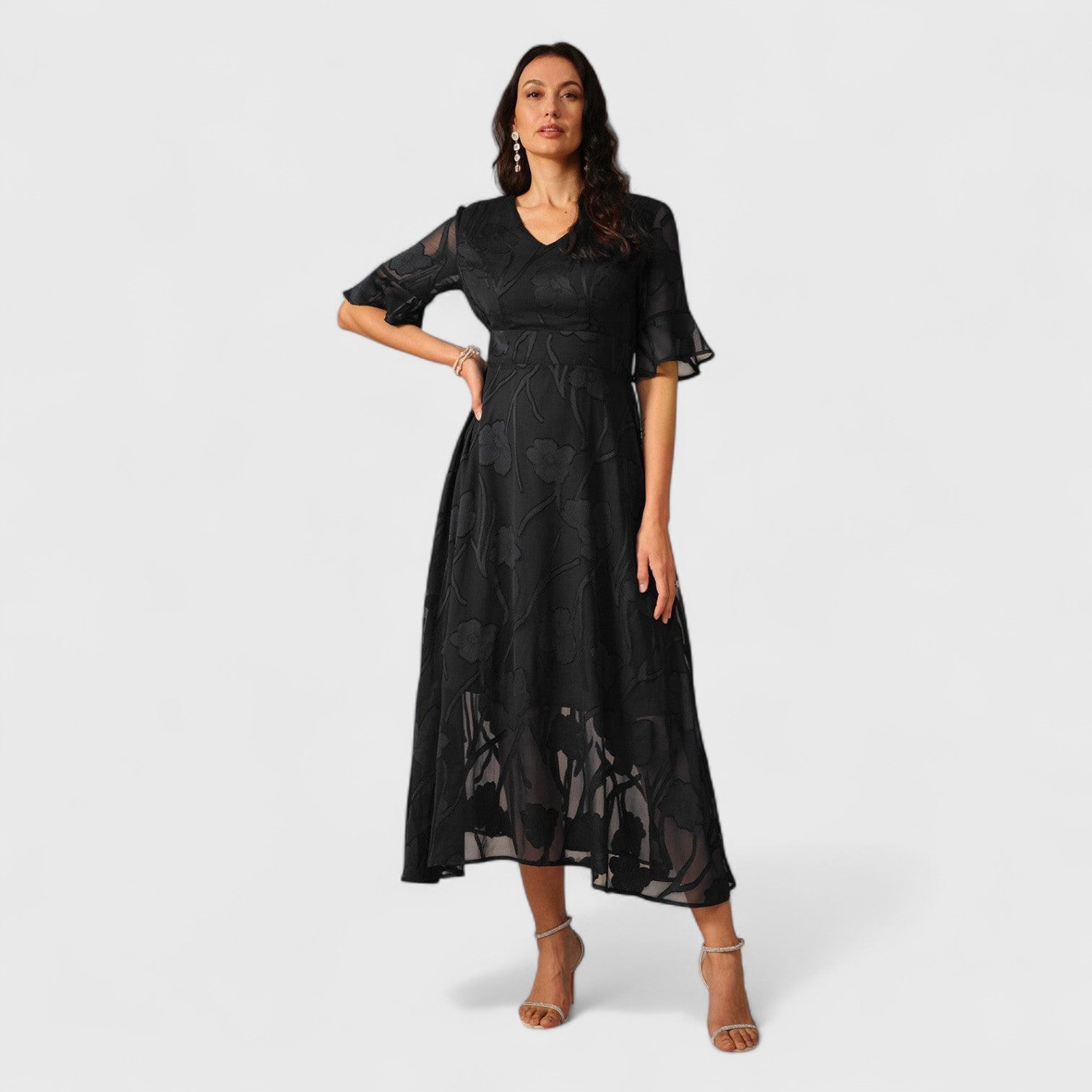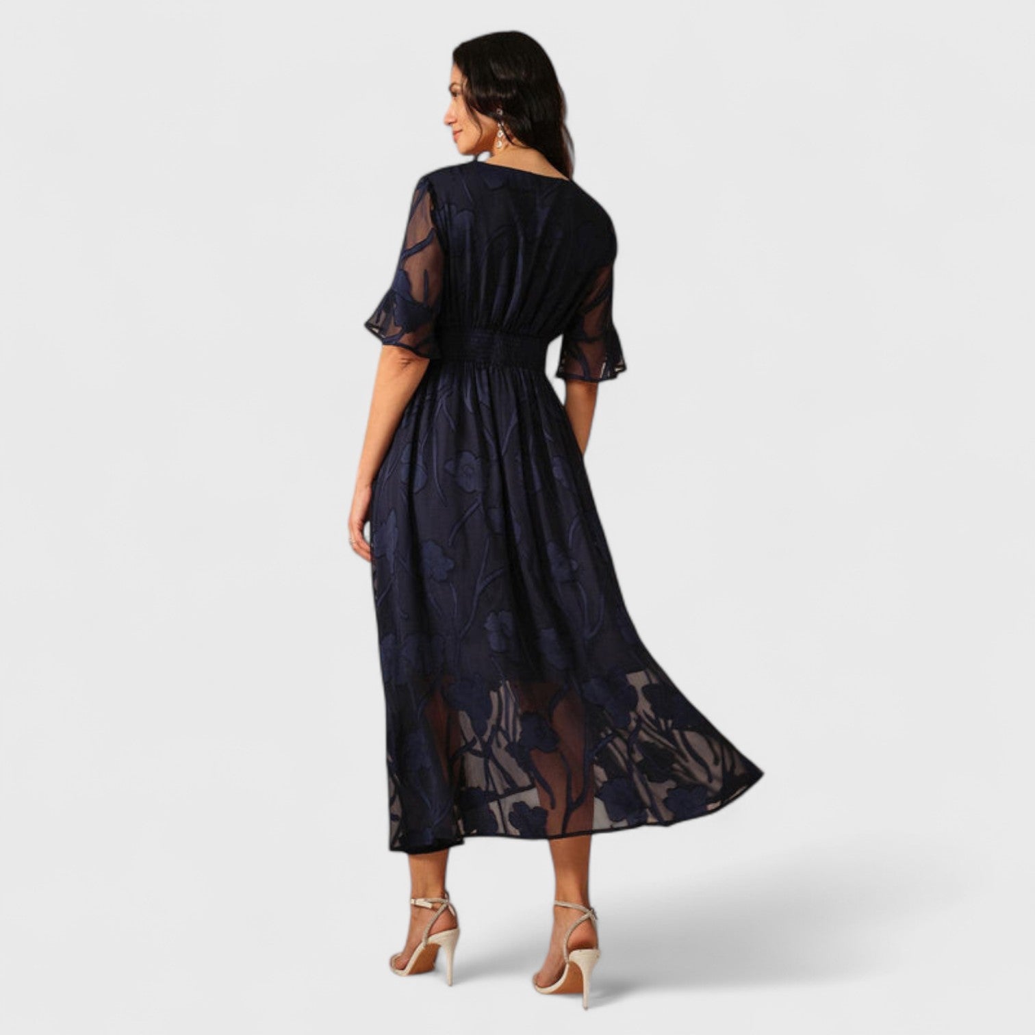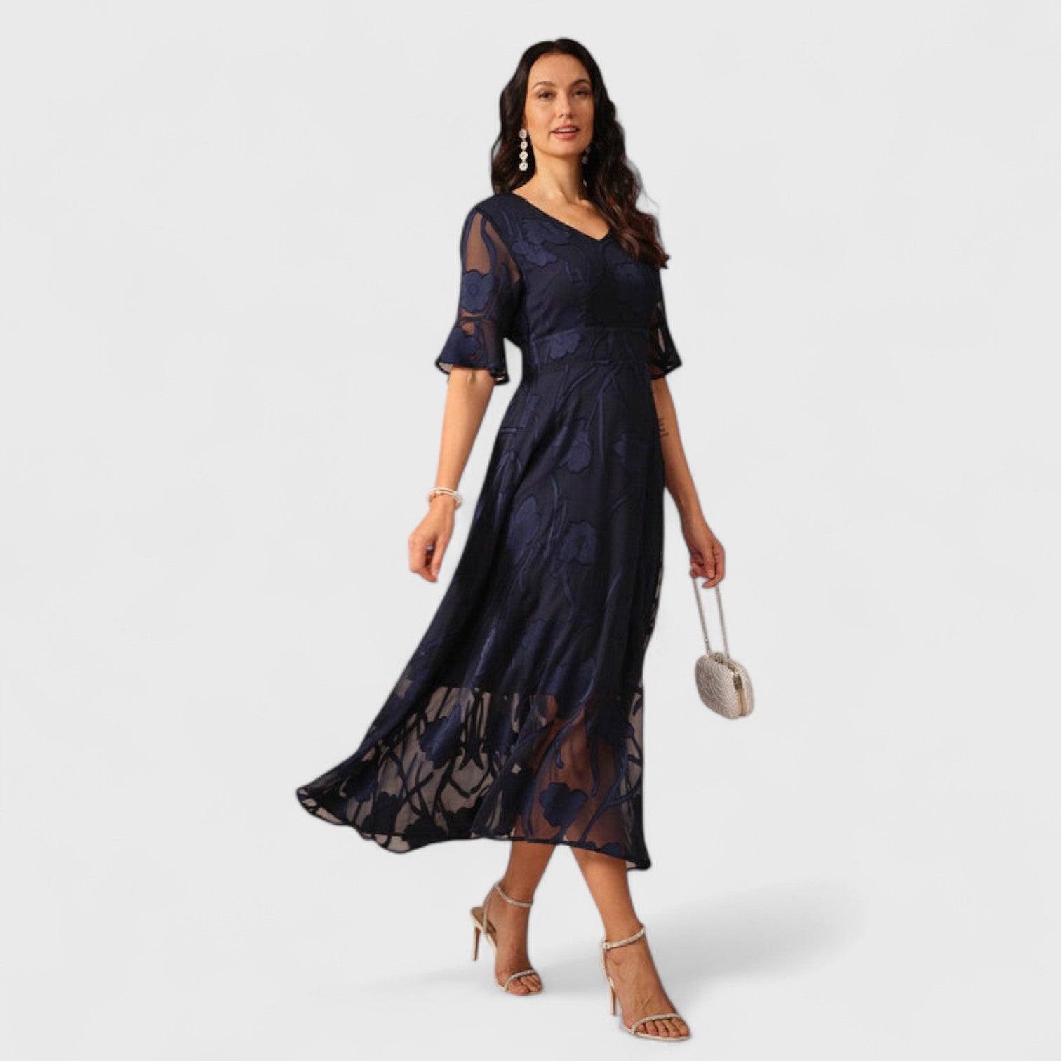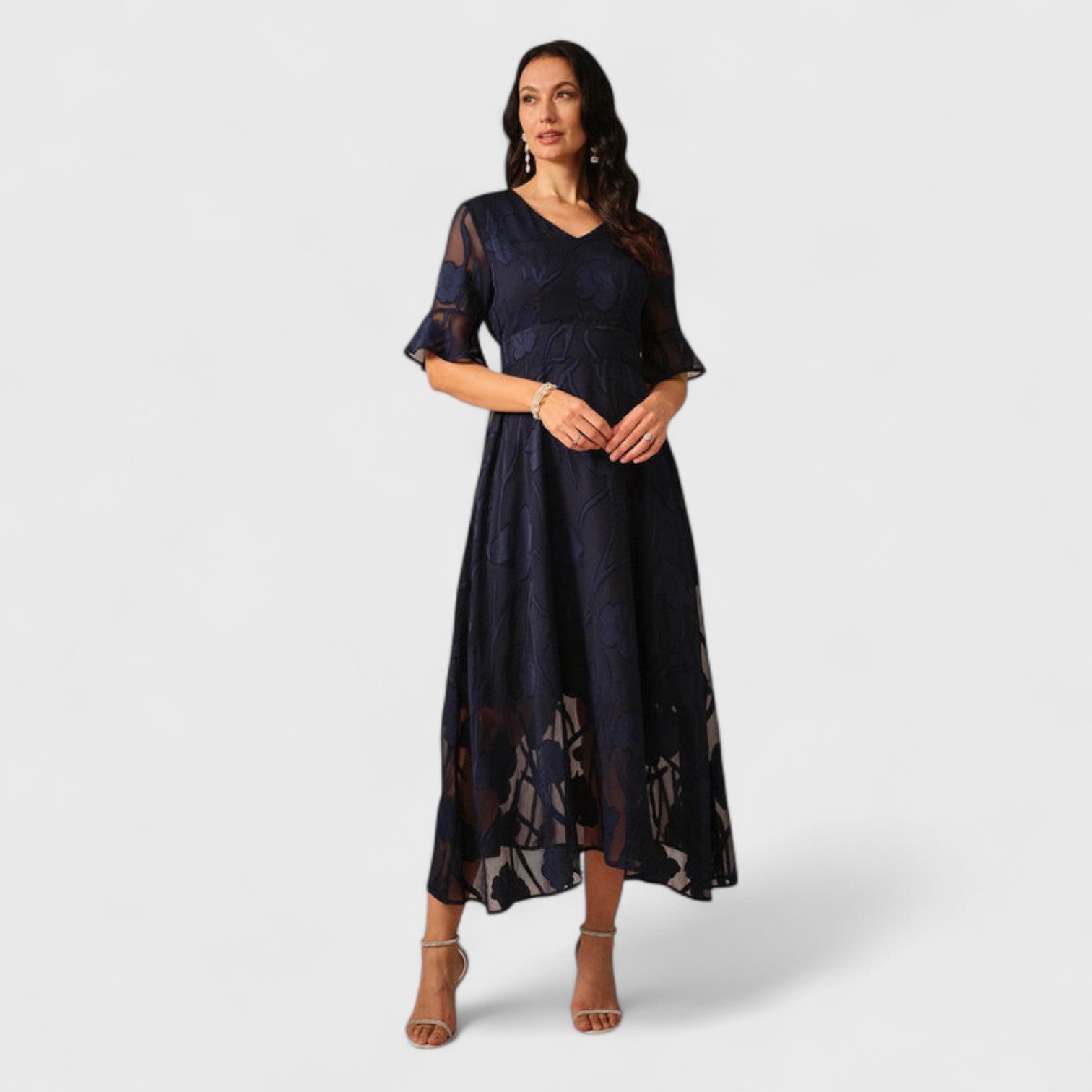 שמלת מקסי תחרה עם קפלים ונצנצים