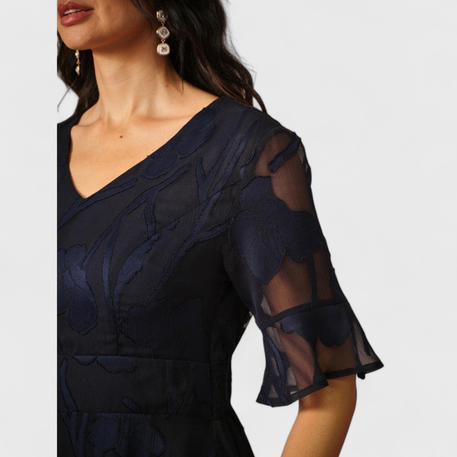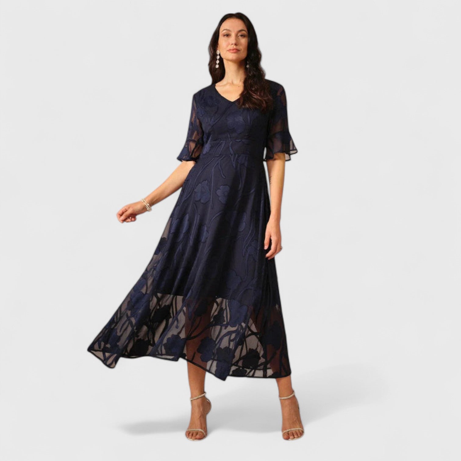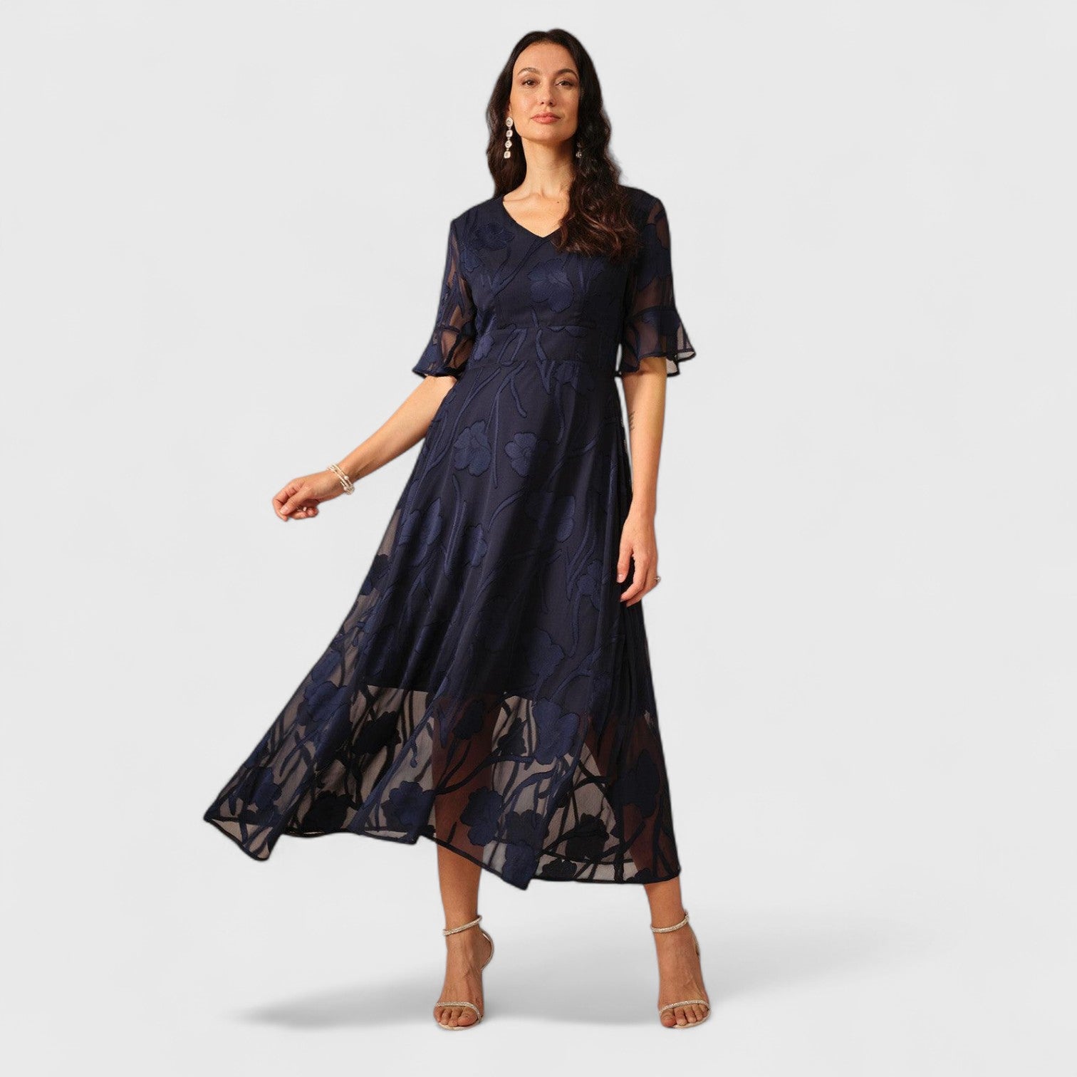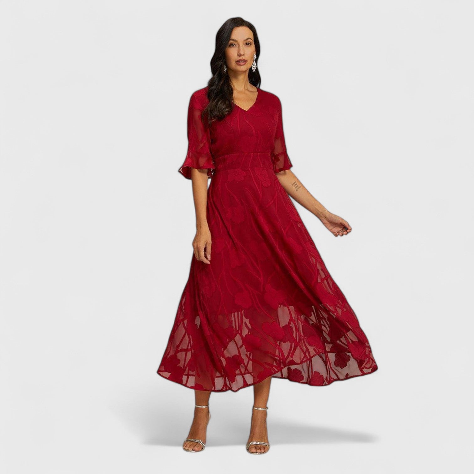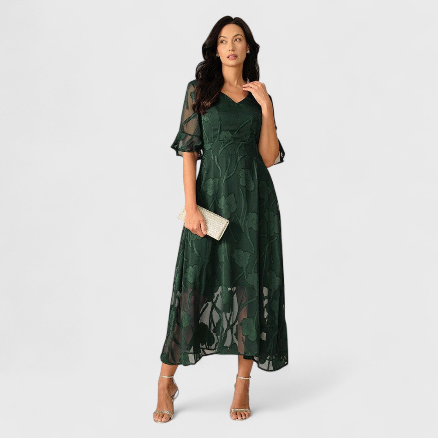 שמלת מקסי תחרה עם קפלים ונצנצים