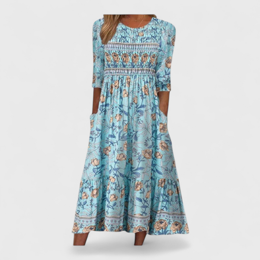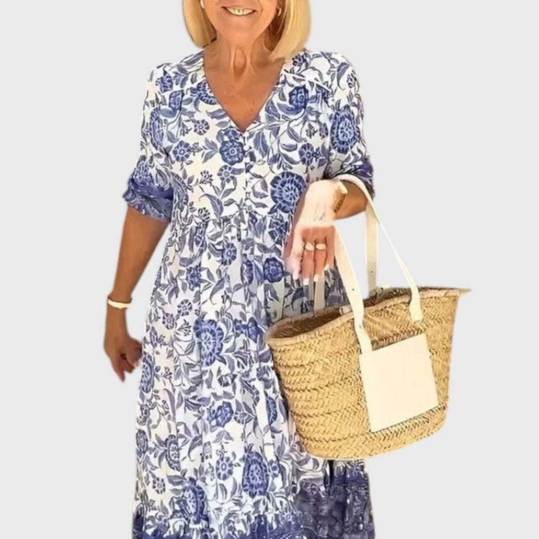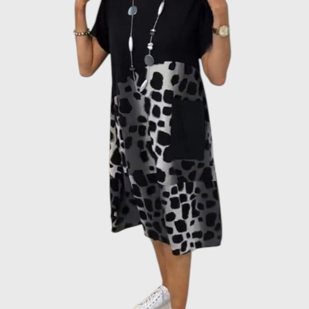 שמלת מידי אלגנטית עם שרוולים ארוכים והדפסה של שירה
