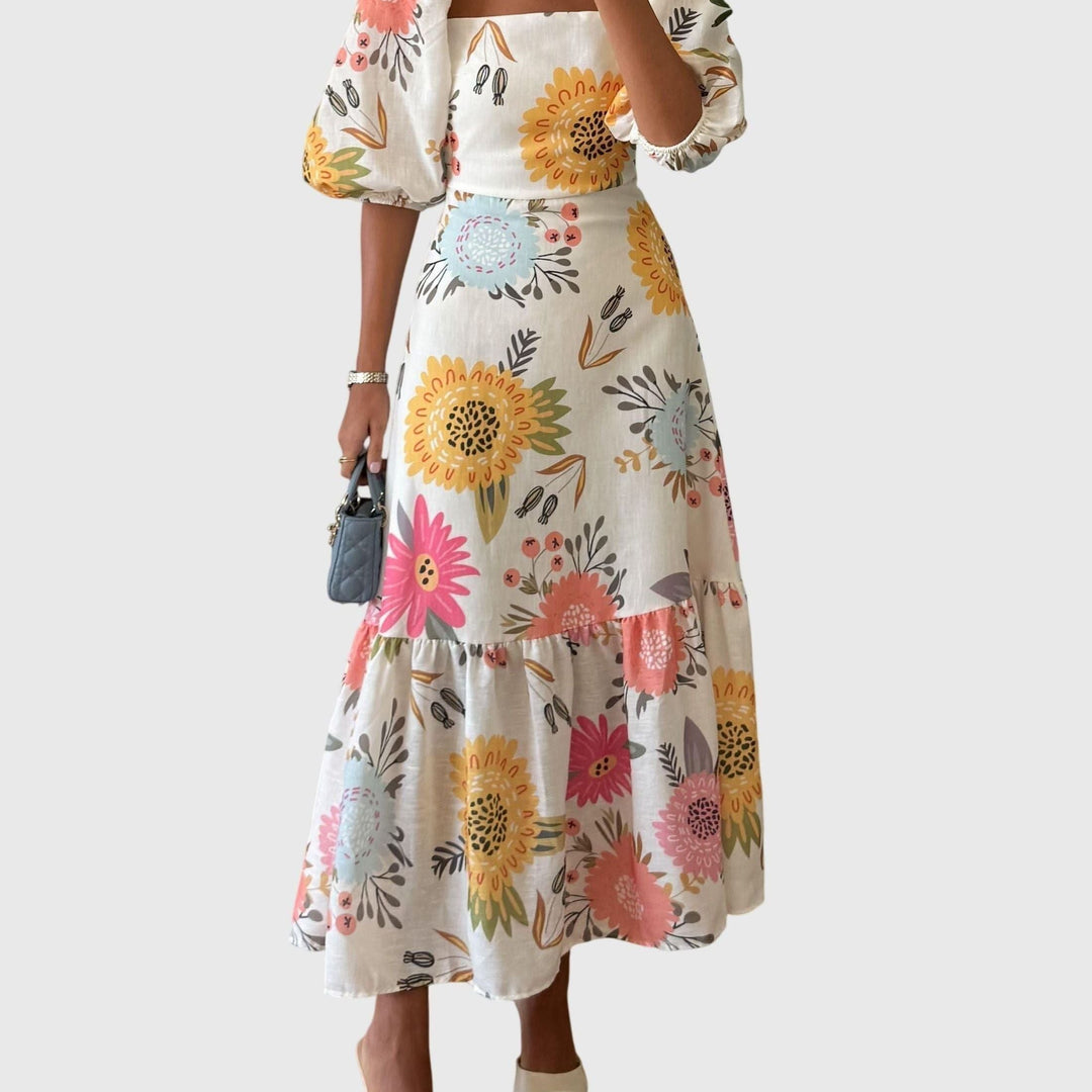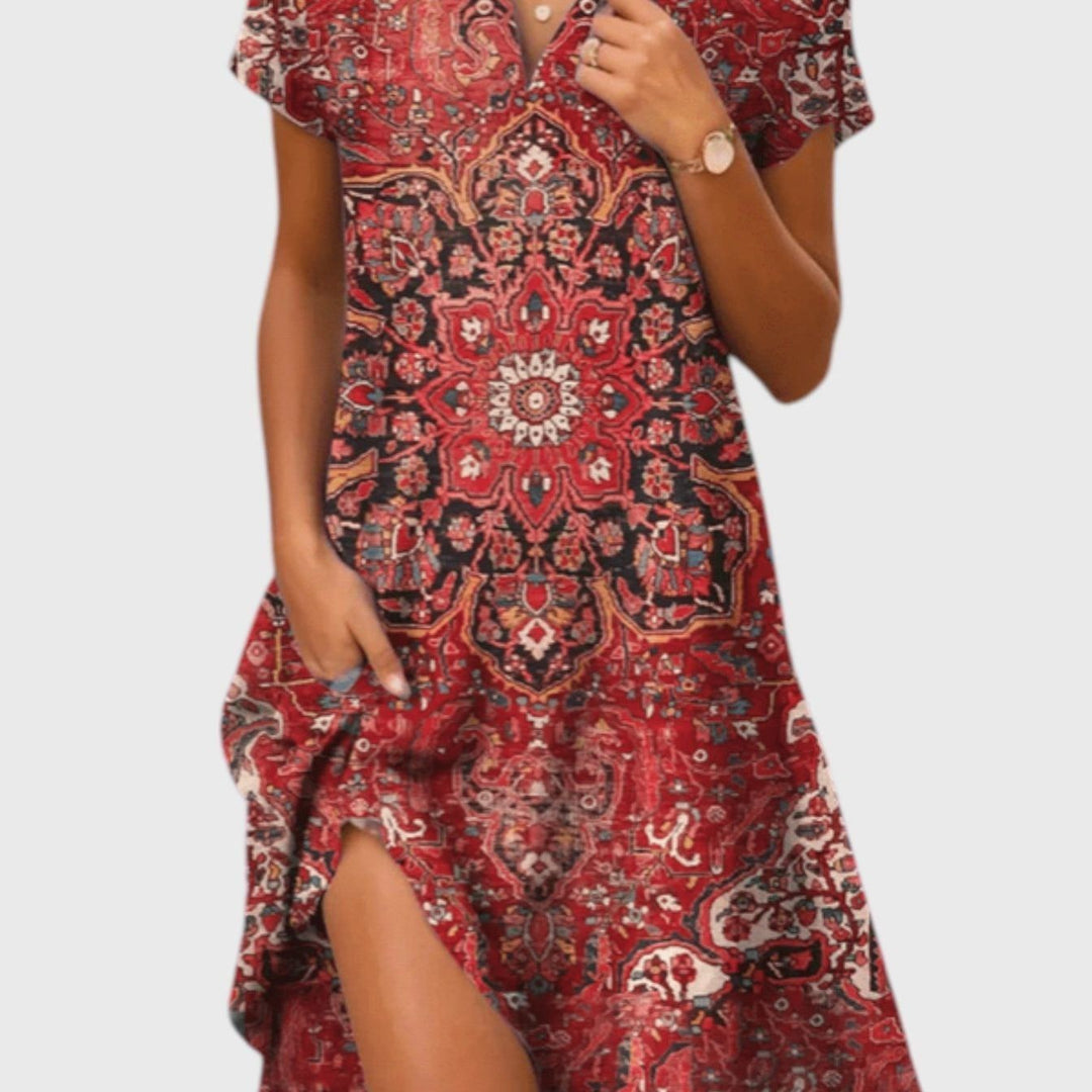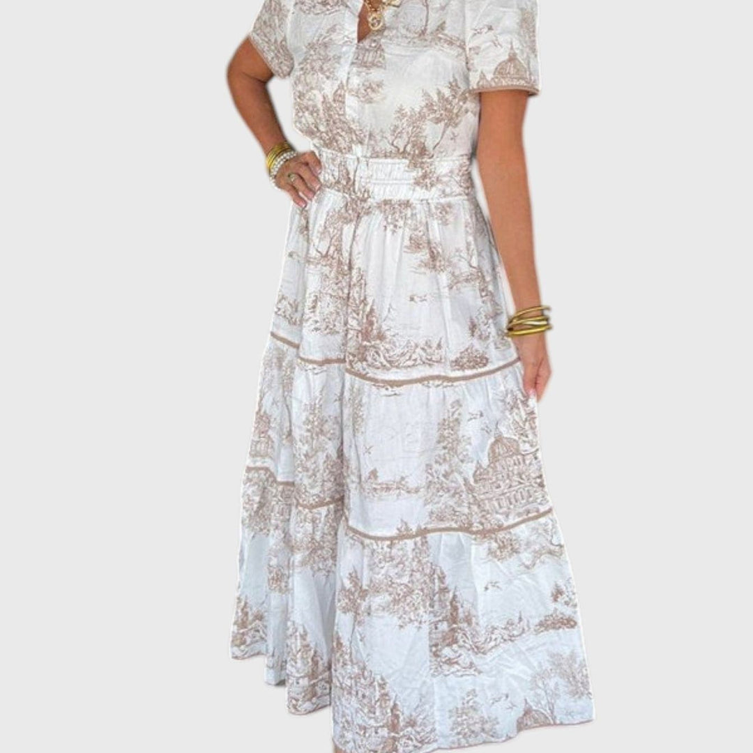 שמלת מידי אלגנטית עם שרוולים ארוכים והדפסה של שירה